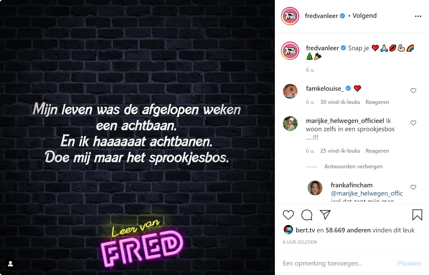 Fred van Leer heeft de afgelopen weken beleefd als een achtbaan. De stylist is op Instagram weer begonnen met zijn hilarische quotes tentoonstellen en zijn nieuwste post stelt niet teleur...