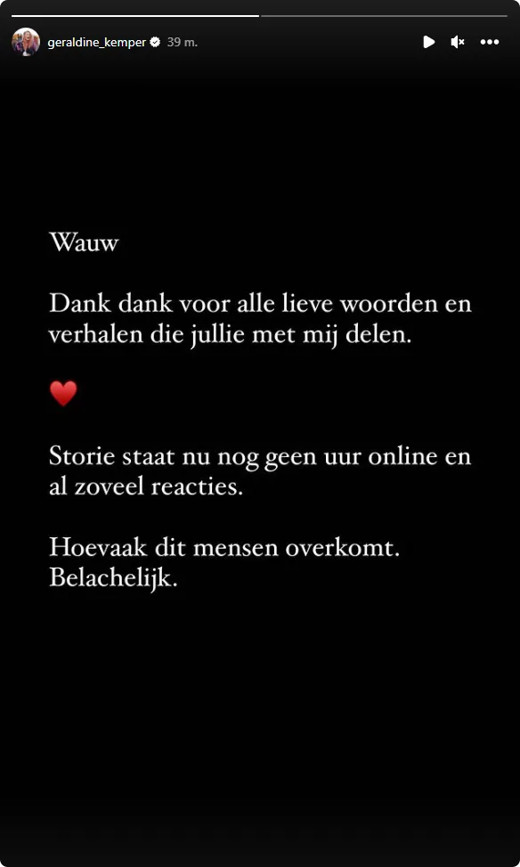 Geraldine Kemper (33) deelt een heftig bericht op instagram. De presentatrice is afgelopen dinsdag lastiggevallen op straat door een voor haar onbekende man.