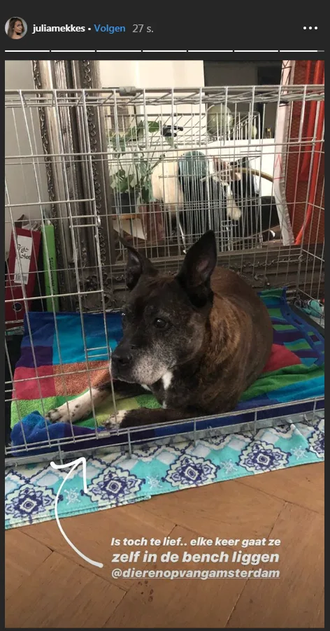 "Ik was dus een tijdje geleden bij de dierenopvang en toen zat daar Kaya en die is gewoon al 13 en drie keer teruggebracht. Nu hebben mijn ouders en ik haar op proef twee dagen om te kijken of ze misschien bij ons kan wonen" vertelt ze op haar Instagram Stories.