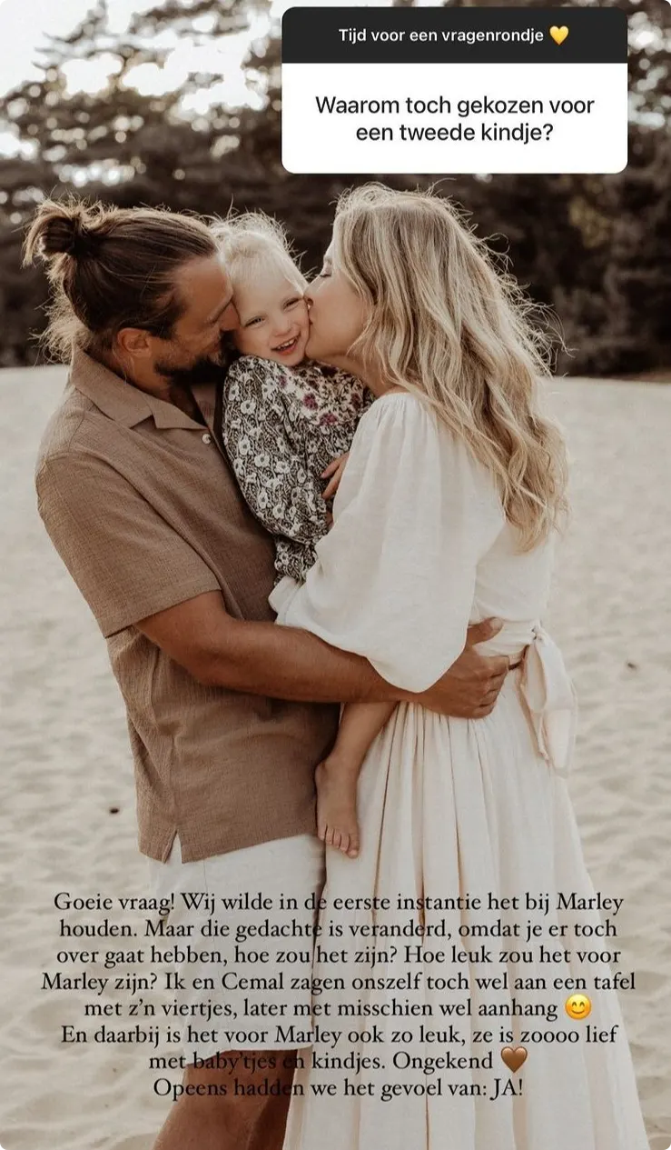 Op Instagram schrijft Cemal: "Met trots willen wij jullie mededelen dat onze lieve Marley grote zus gaat worden in 2023!"