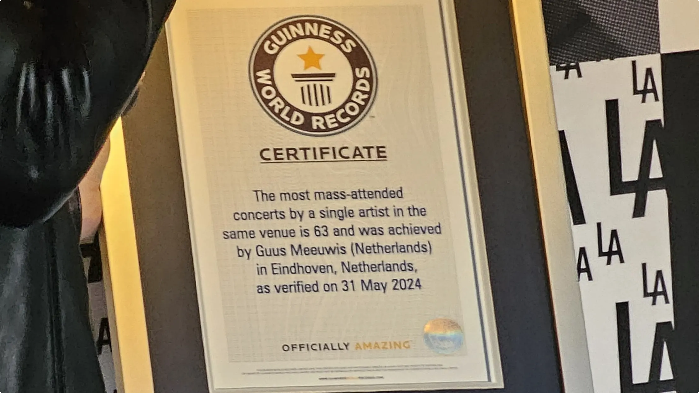 Dit is vrijdag bekendgemaakt in het Philips Stadion in Eindhoven, het decor van zijn stadionconcerten. Guus krijgt het wereldrecord voor "de meeste massaal bezochte concerten, door een artiest in één stadion".