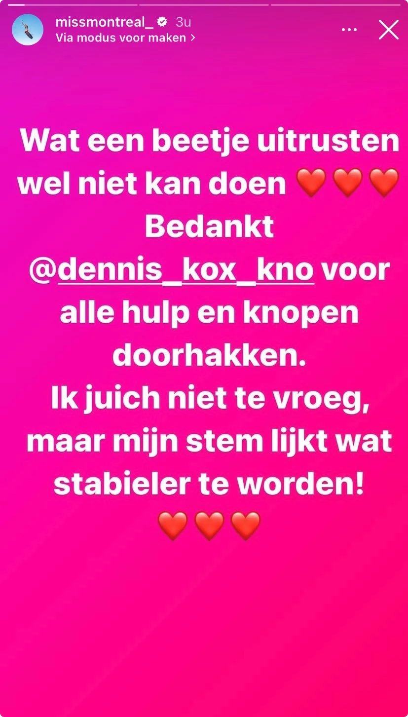 Goed nieuws zondag voor Miss Montreal. op Instagram laat de zangeres weten dat het een stuk beter met haar gaat.