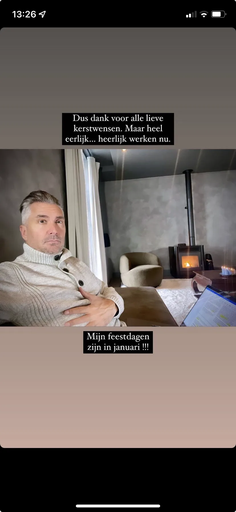 Wel bedankt hij zijn volgers nog even voor de lieve kerstwensen en schrijft hij: "Mijn feestdagen zijn in januari!!"