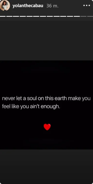 "Laat geen enkele ziel op aarde je ooit het gevoel geven dat je niet genoeg bent", valt er te lezen op haar Instagram Stories. Je ziet het hieronder: