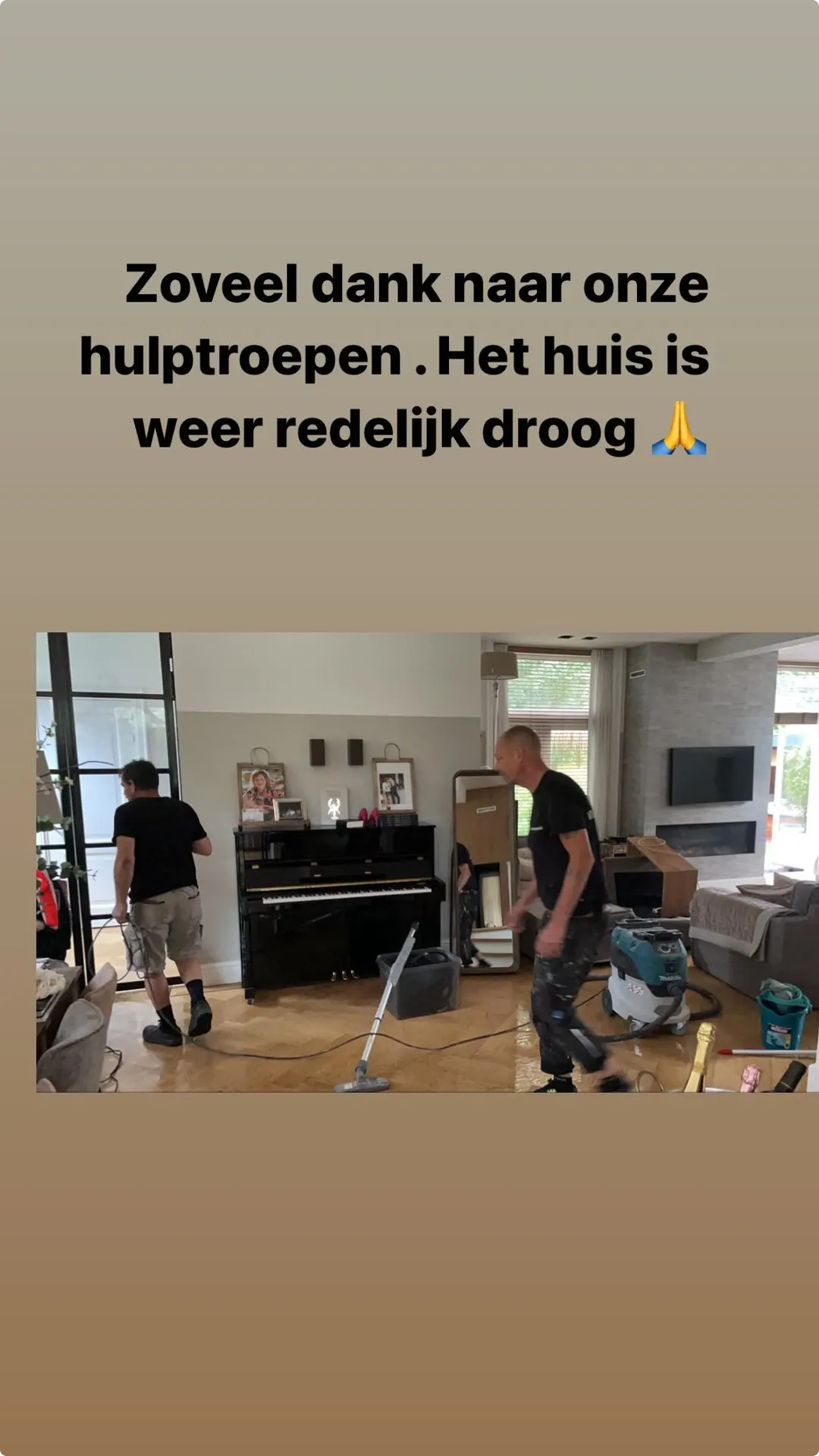 Gelukkig lijkt het goed af te lopen, zo laat Sonja weten: "Zoveel dank naar onze hulptroepen! Het huis is weer redelijk droog!"