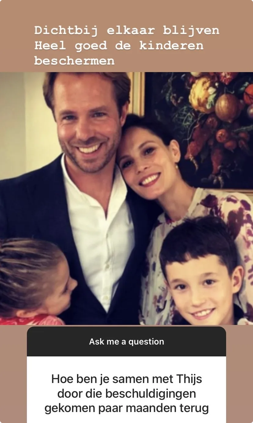 "Hoe ben je samen met Thijs door die beschuldigingen gekomen een paar maanden terug?", vroeg iemand op Instagram aan De Jongh, die sinds 2019 getrouwd is met de acteur. "Dichtbij elkaar blijven. Heel goed de kinderen beschermen", reageerde ze daarop, gevolgd door een foto met hun kinderen waarop ze tegen Römer aanleunt.
