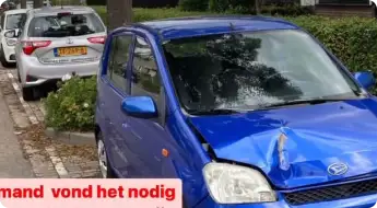 "Mijn auto stond en staat geparkeerd aan de Blokweerweg in Alblasserdam. Ik zou het waarderen als u contact opneemt om een en ander netjes af te handelen." Hieronder de foto: