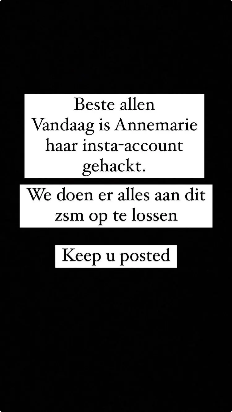 De Volendamse zanger deelt op zijn Instagram dat ze er alles aan doen om het zo snel mogelijk op te lossen. Gelukkig voor Annemarie is er niks gedeeld op haar account.