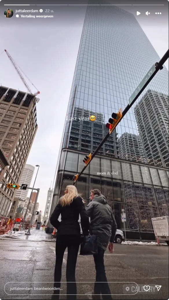 "Afgelopen jaar", zo schrijft Jutta in haar Instagram Stories met een emotionele emoji. Ook laat ze weten dat haar ouders op de story te zien zijn. "Mama en papa", zo valt er klein te lezen.