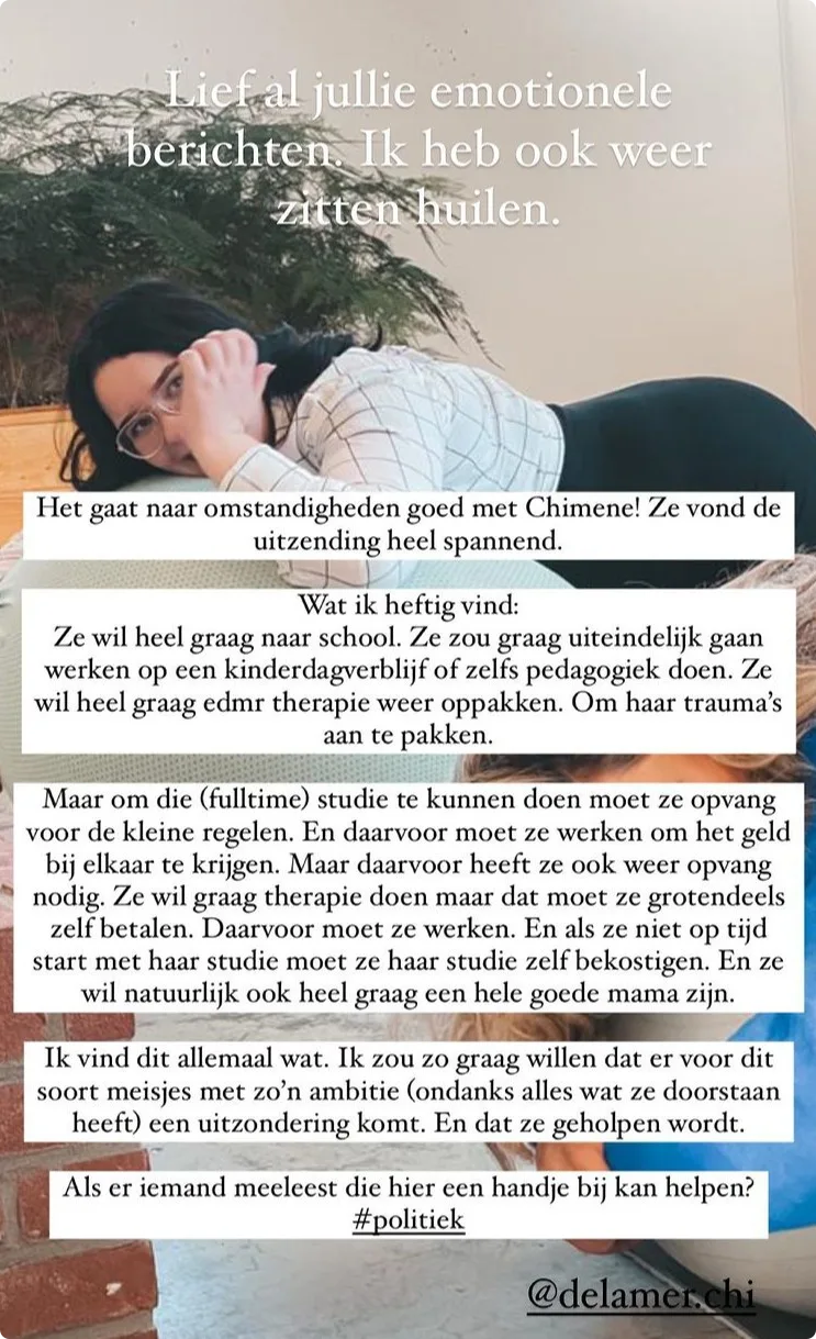 Kim heeft ook een update gegeven over Chimène. In haar Instagram Stories laat ze weten hoe het nu met haar gaat: