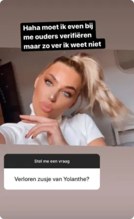 De 'blonde Yolanthe' deelt de ene na de andere vraag en opmerking van volgers die haar op de presentatrice vinden lijken. "Verloren zusje van Yolanthe?" stuurt iemand bijvoorbeeld. Jørney reageert gevat: "Haha, moet ik even bij mijn ouders verifiëren. Maar voor zover ik weet niet."