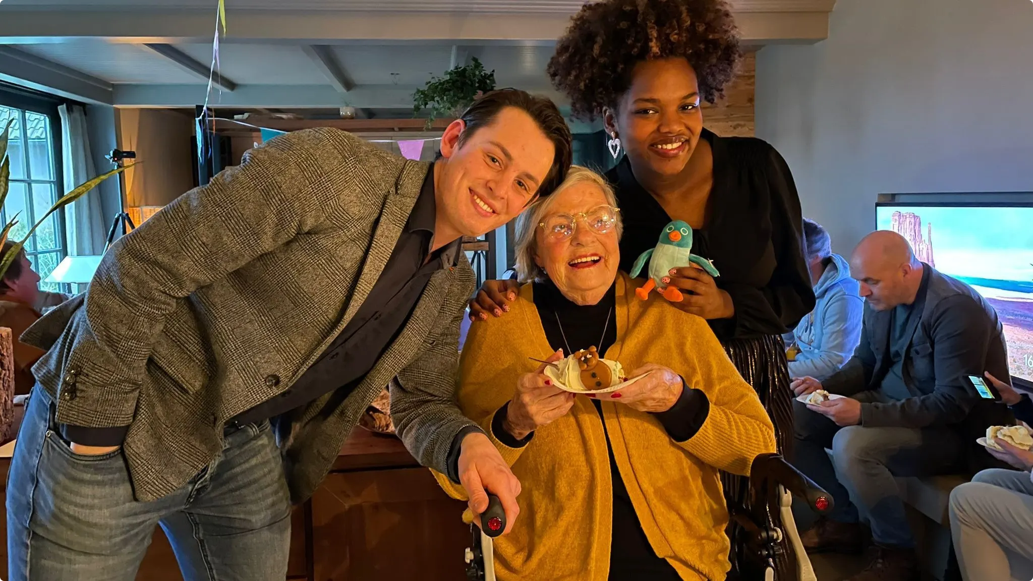 De presentator vindt het geweldig om overgrootvader te worden. "Je hebt een kind en die heeft een kind... En daar zit dan ook weer een kind in. Dat is bijzonder, dat is een godsgeschenk. Overgrootvader, wie kan dat zeggen?" Ook Henny's moeder is zo te zien ontzettend blij.
