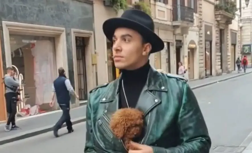 De danser deelt een fragment van voor de quarantaine, waarin hij met zijn hondje onder zijn jas door de straten van Rome loopt. Deze video is bovenaan deze pagina te zien.