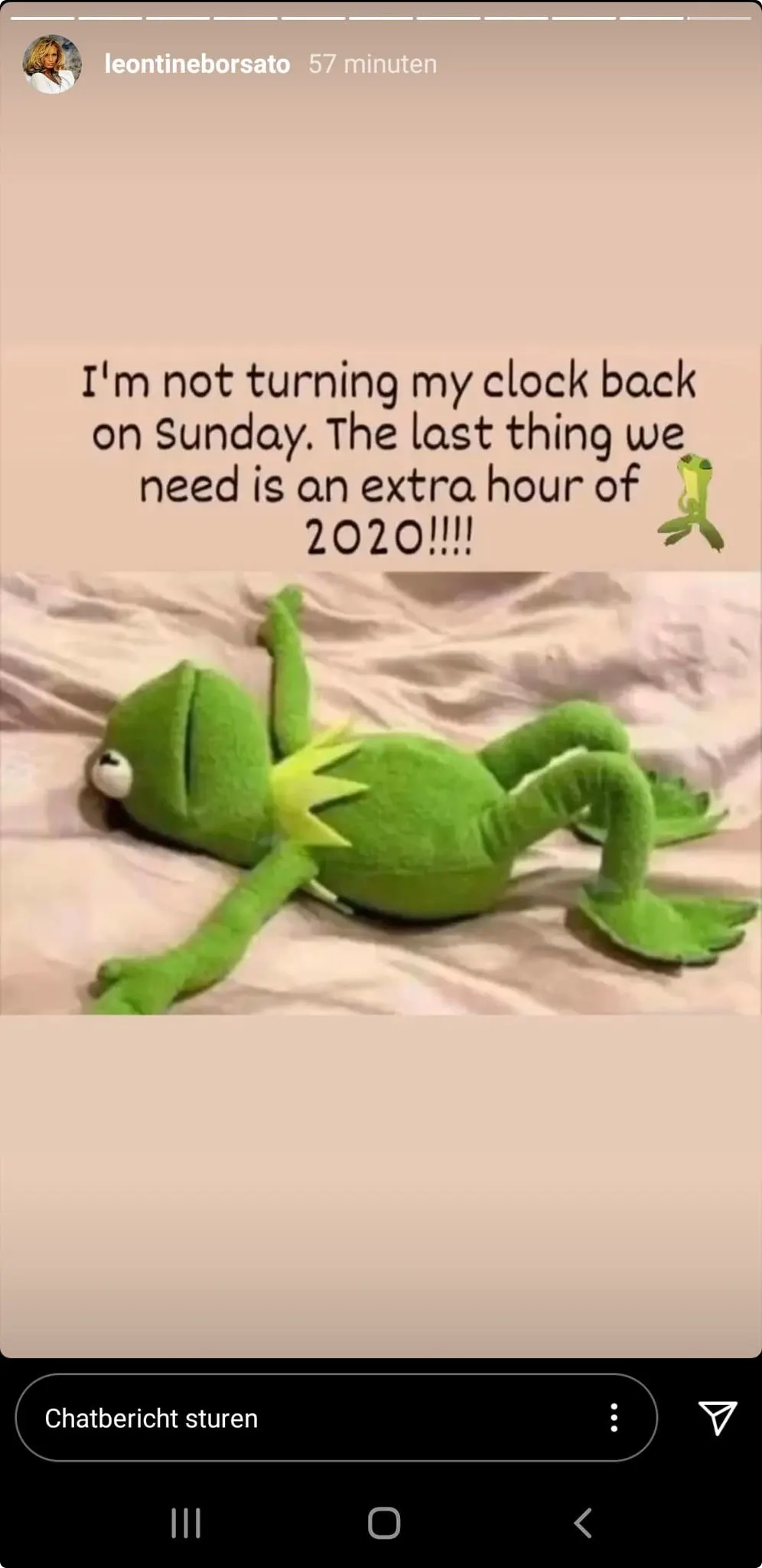 Dit laat ze weten op Instagram. In de nacht van zaterdag op zondag draaien we de klok vanwege wintertijd een uurtje terug en zo hebben we dus iets langer weekend. Normaal gesproken een fijn idee, maar Leontine denkt daar anders over.
