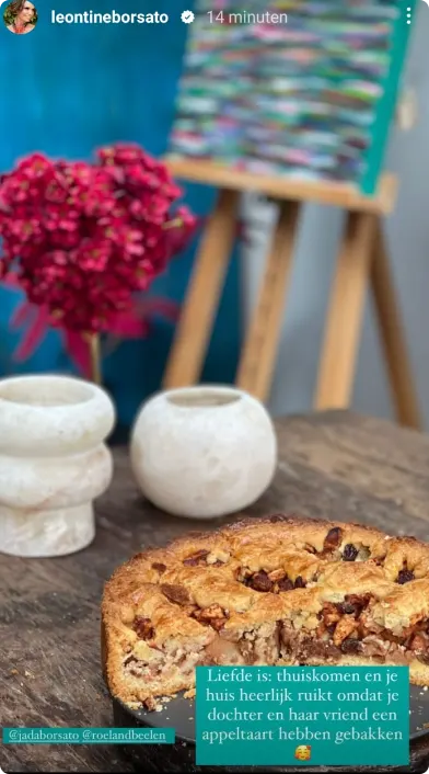"Liefde is thuiskomen en je huis heerlijk ruikt, omdat je dochter en haar vriend een appeltaart hebben gebakken", schrijft ze bij de foto hieronder.