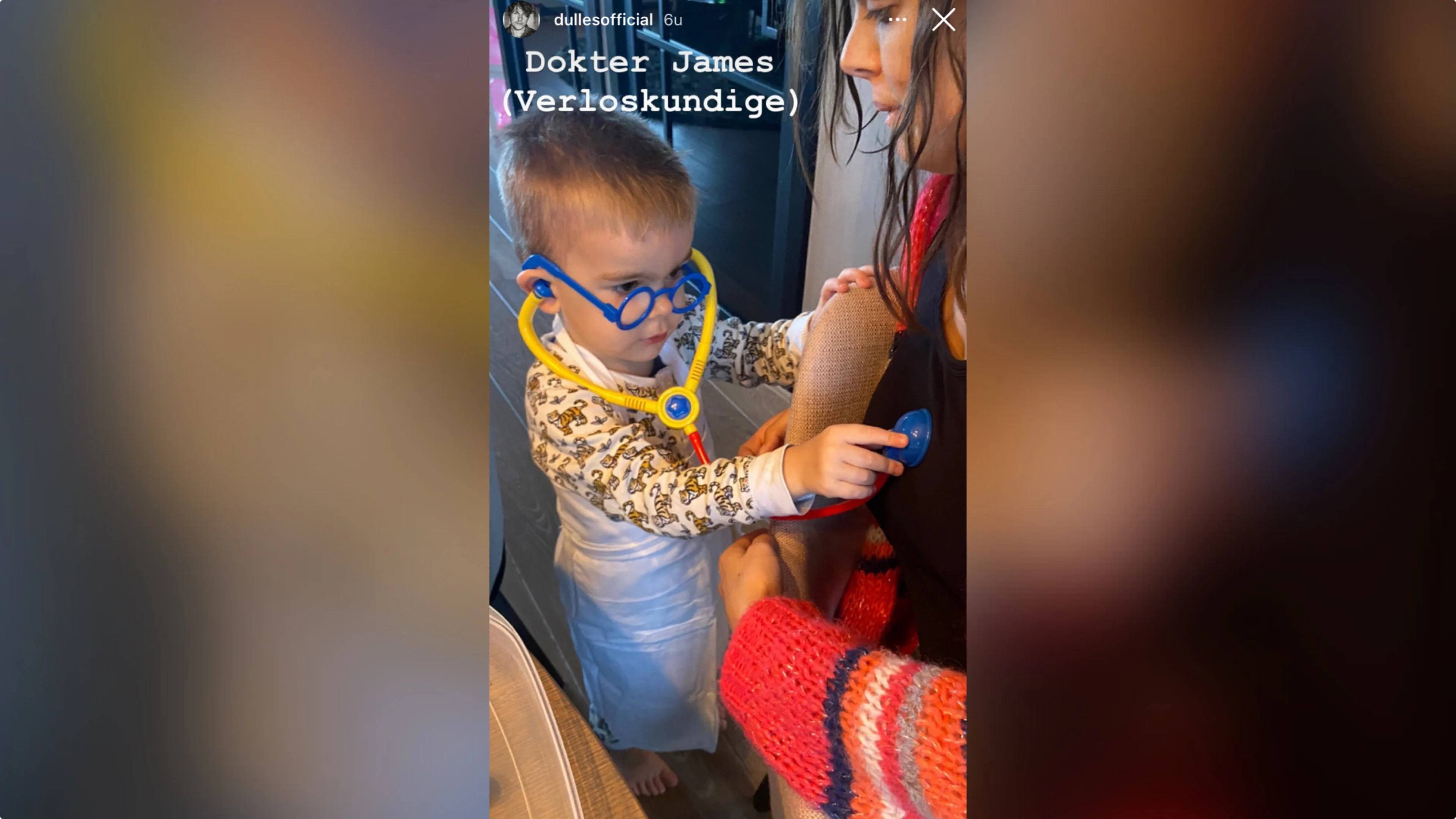 In een Story op Instagram plaatst de Volemdamse zanger een kiekje van James en Caroline. "Dokter James", schrijft Jan erbij. Cute!