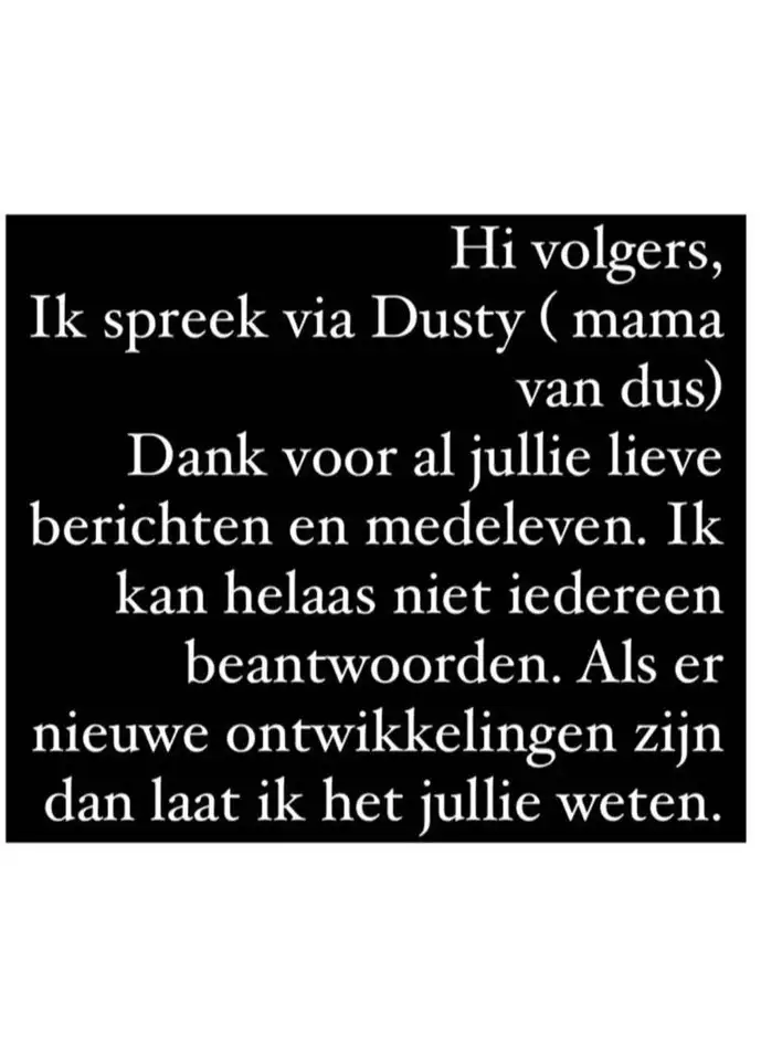 Ze laat weten dat er geen nieuwe ontwikkelingen zijn en ze wil iedereen bedanken voor alle steun en lieve berichtjes.