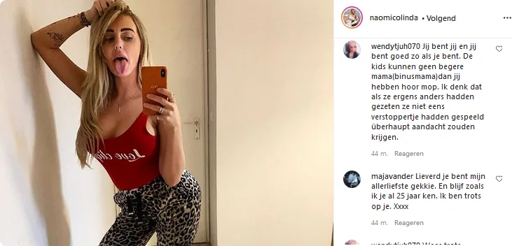 Het bericht kan rekenen op veel sympathie en steun van haar volgers. "Jij bent jij en jij bent goed zo als je bent. De kids kunnen geen betere mama (bonusmama) dan jij hebben hoor, mop", kan Naomi bijvoorbeeld in haar zak steken.