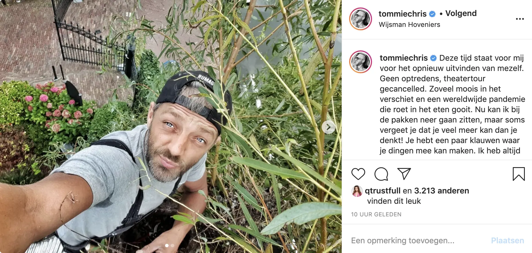 Zanger Tommie Christiaan stopt (voorlopig) met zingen en heeft een nieuwe baan! Hij heeft zijn 'tweede' hart gevolgd en is opgeleid tot hovenier. Op social media deelt hij zijn persoonlijke verhaal.