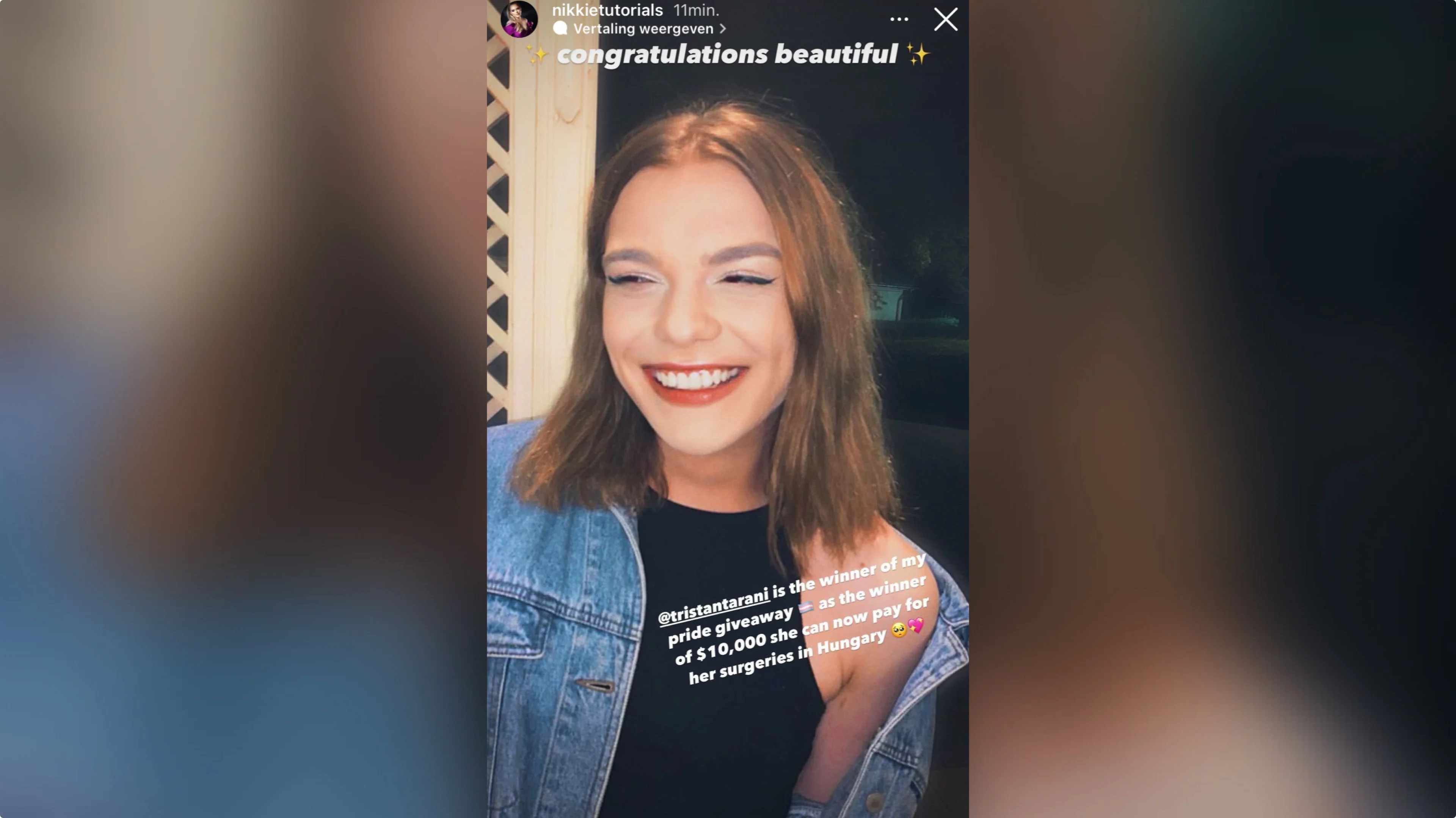 Dat heeft Nikkie uiteindelijk ook gedaan. Op Instagram deelt ze vol trots de winnares van de actie. De gelukkige in kwestie is Trisha, een transmeisje uit Hongarije. "Als de winnares van de giveaway kan ze nu haar operaties betalen", schrijft Nikkie bij een foto van Trisha.