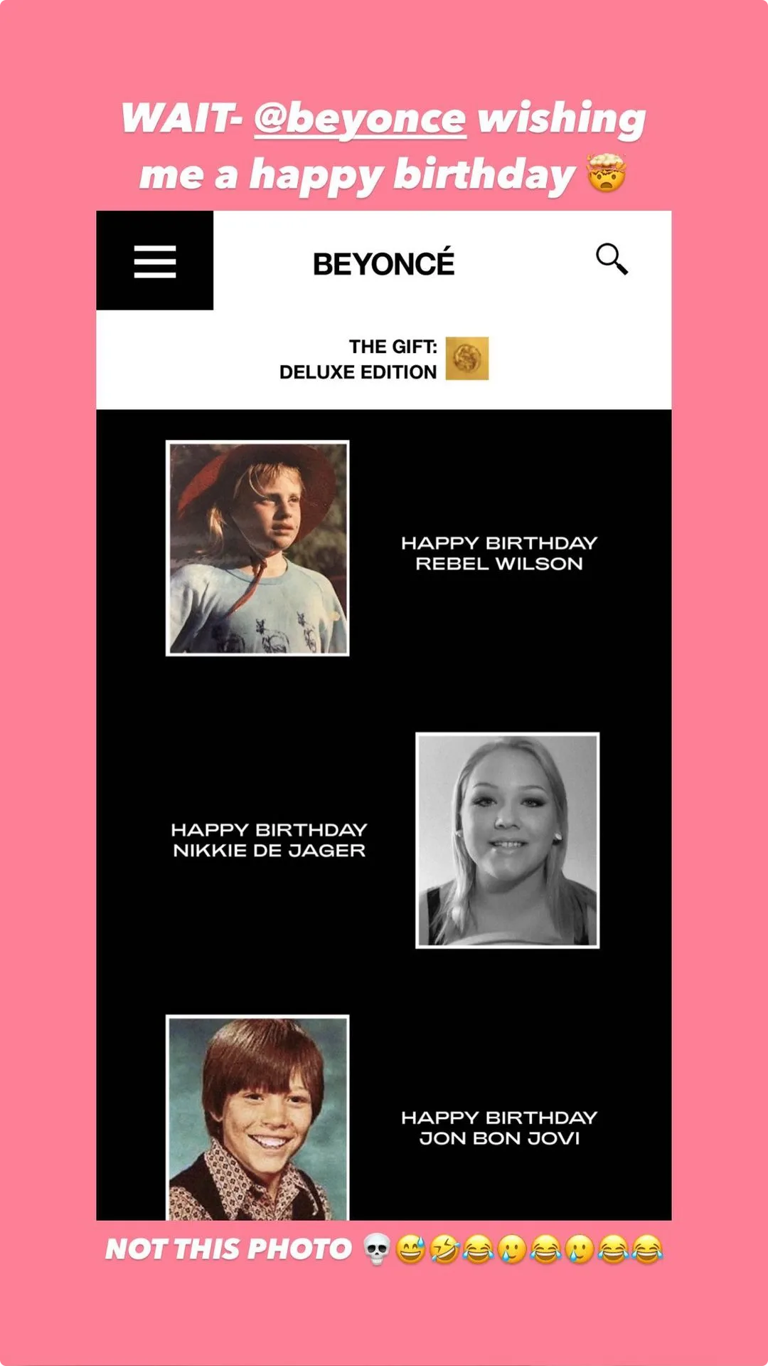 Nikki vierde woensdag haar 28e verjaardag en ontvangt een hoop felicitaties. Toch springt er een behoorlijk uit: de influencer krijgt namelijk een felicitatie van wereldster Beyoncé. "Wacht even: Beyoncé wenst me gewoon een fijne verjaardag!", schrijft Nikkie op Instagram." Op de foto is te zien dat de zangeres ook ook Rebel Wilson en Jon Bon Jovi feliciteert.
