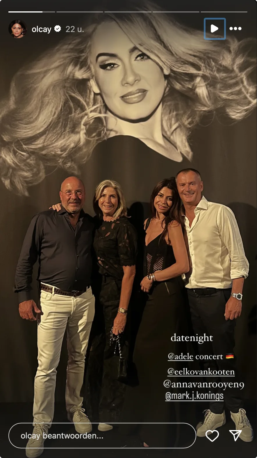 Olcay deelde haar geluk met haar volgers op Instagram Stories, waar ze een foto van zichzelf en Eelko plaatste.