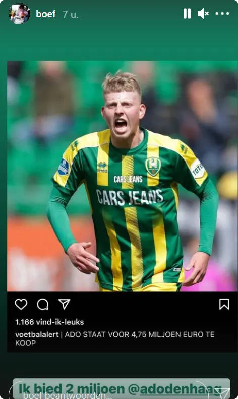 De Chinese eigenaren van ADO hopen de club te verkopen aan een andere partij. Voor 4,75 miljoen wisselt de Haagse club van eigenaar. Een opvallende koper dient zich via Instagram aan. Rapper Boef schrijft namelijk: "Ik bied 2 miljoen."
