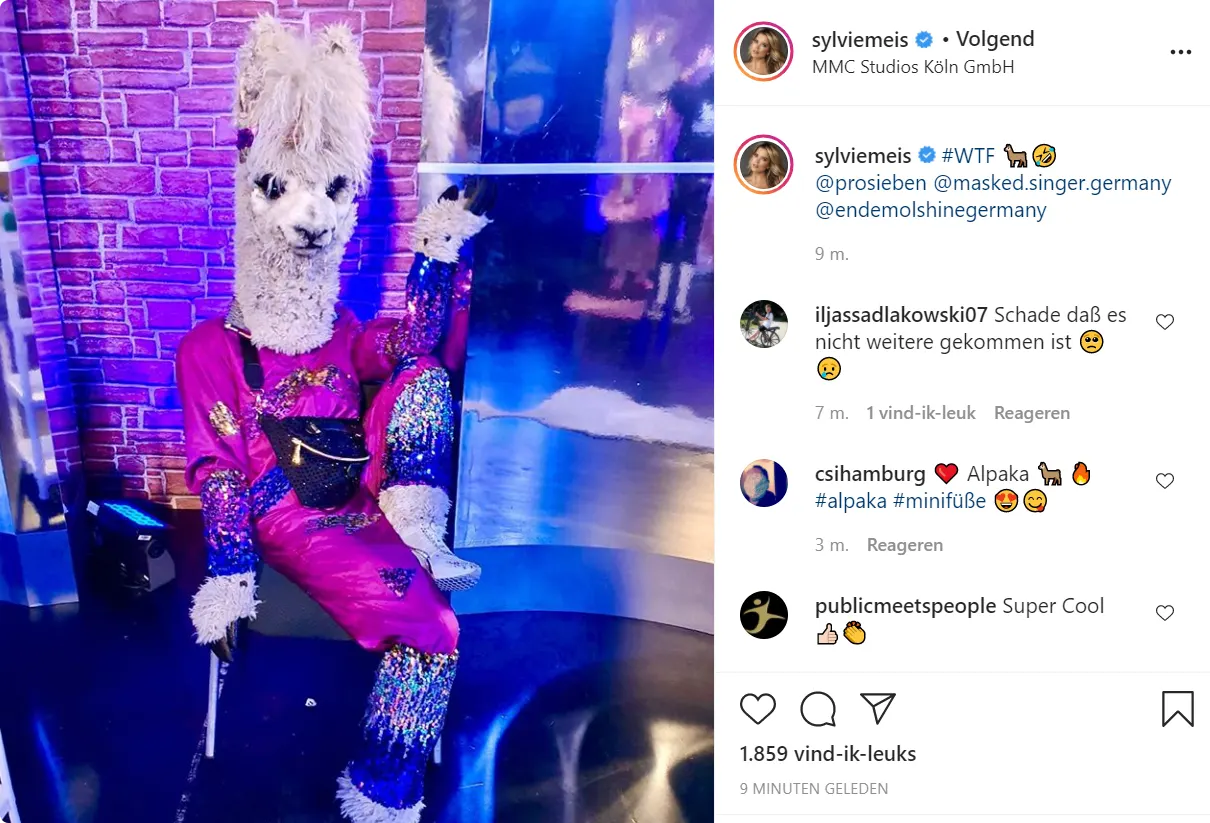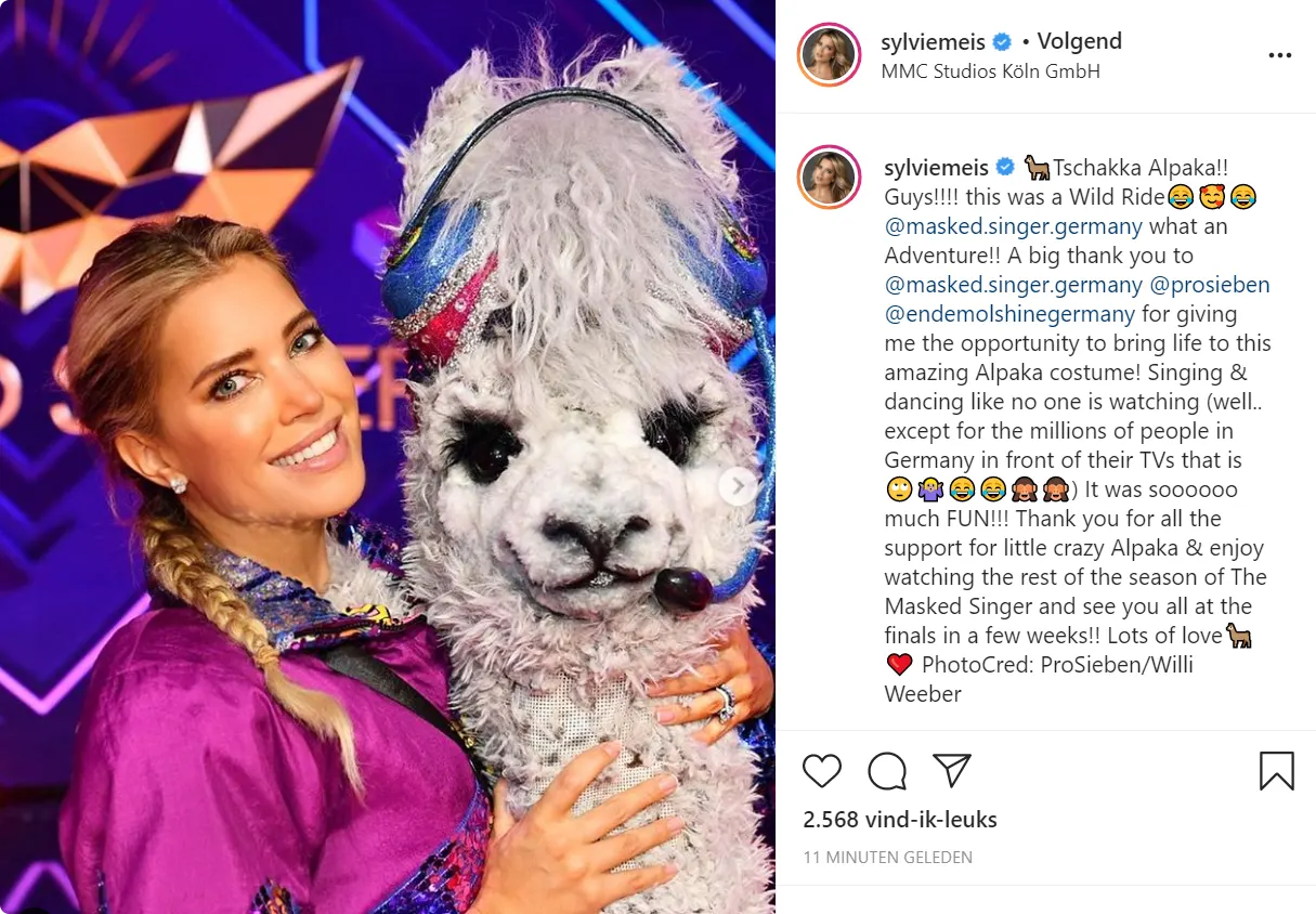 Sylvie Meis heeft meegedaan aan The Masked Singer! Op Instagram onthult ze dat ze in het pak van de Alpaca zat...