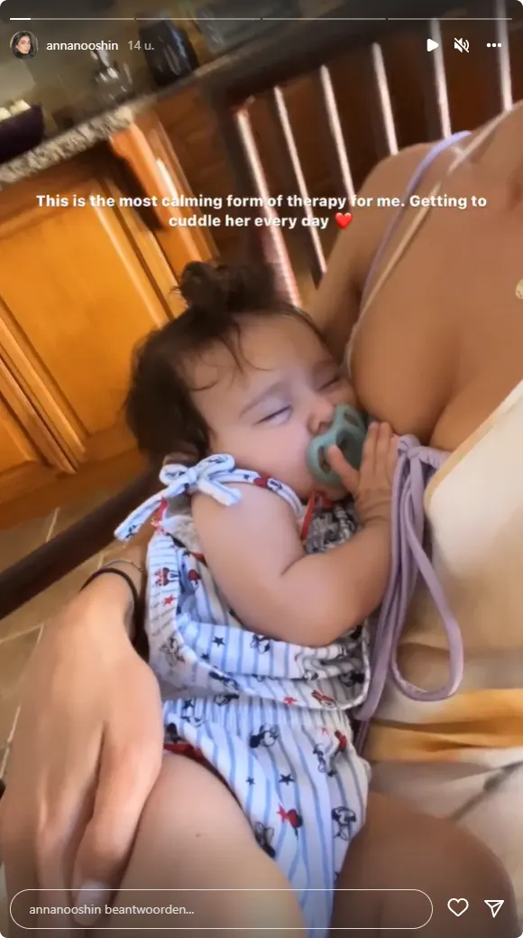 Op Instagram deelt de influencer beelden waarop ze een baby vasthoudt. "Dit is voor mij de meest rustgevende vorm van therapie. Elke dag met haar knuffelen", schrijft ze in het bericht.