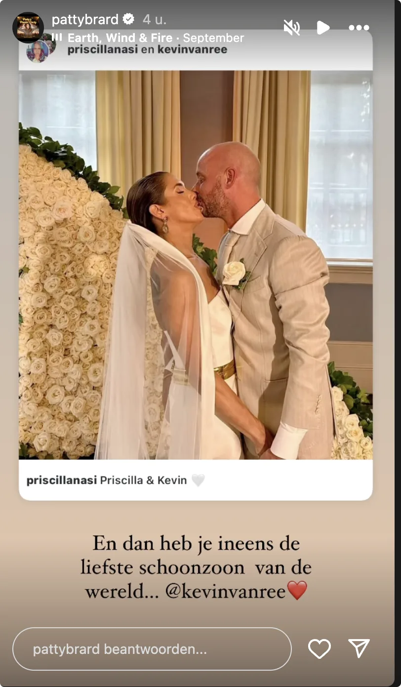 "Zo trots op onze meid", zo schrijft de diva in haar Instagram Stories. Ook vindt ze Priscilla's kersverse man Kevin de "liefste schoonzoon van de wereld".