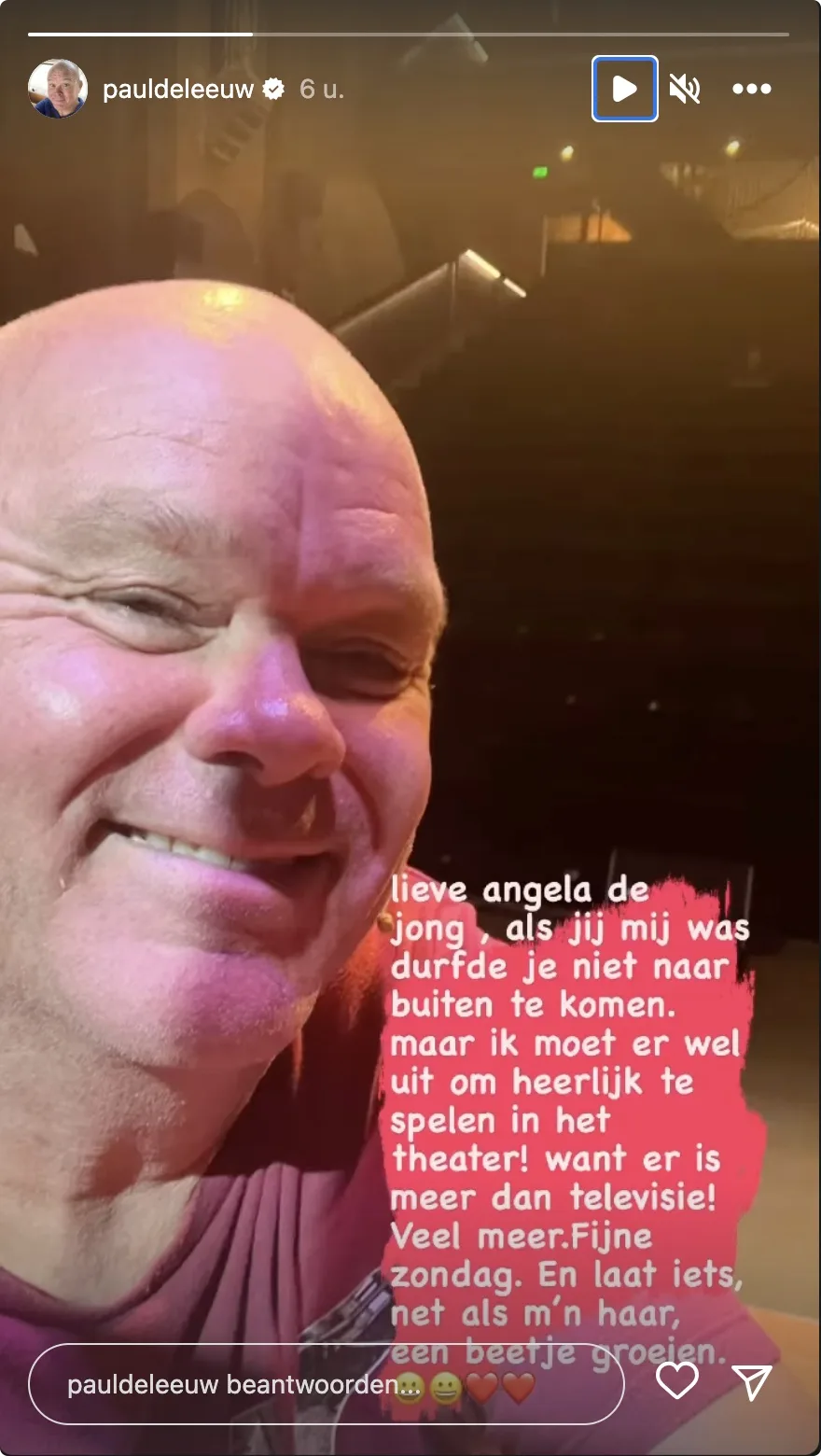 Paul de Leeuw heeft op Instagram gereageerd op de negatieve recensie die Angela de Jong schreef over zijn nieuwe programma Hotel Hollandia. "Laat iets, net als mijn haar, een beetje groeien", schrijft Paul in zijn story.