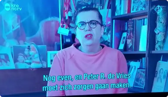 Mensen die de ondertiteling via Teletekst mee hadden lopen, zagen echter een hele andere tekst. "Ik zat in Maestro, De Slimste Mens natuurlijk en bij Jinek mag ik lekker over het koningshuis komen babbelen." En vlak na een duidelijke 'knip' in het beeld: "Nog even en Peter R. de Vries moet zich zorgen gaan maken."