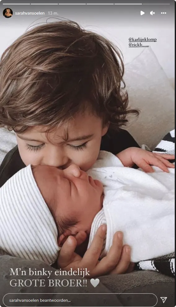 "M'n binky eindelijk grote broer", schrijft Sarah bij de volgende lieve foto.