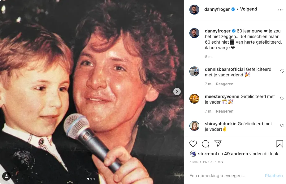 Zo plaatst zoon Danny Froger onderstaande foto op Instagram. Hij schrijft: "60 jaar ouwe... Je zou het niet zeggen... 59 misschien maar 60 echt niet! Van harte gefeliciteerd, ik hou van je"