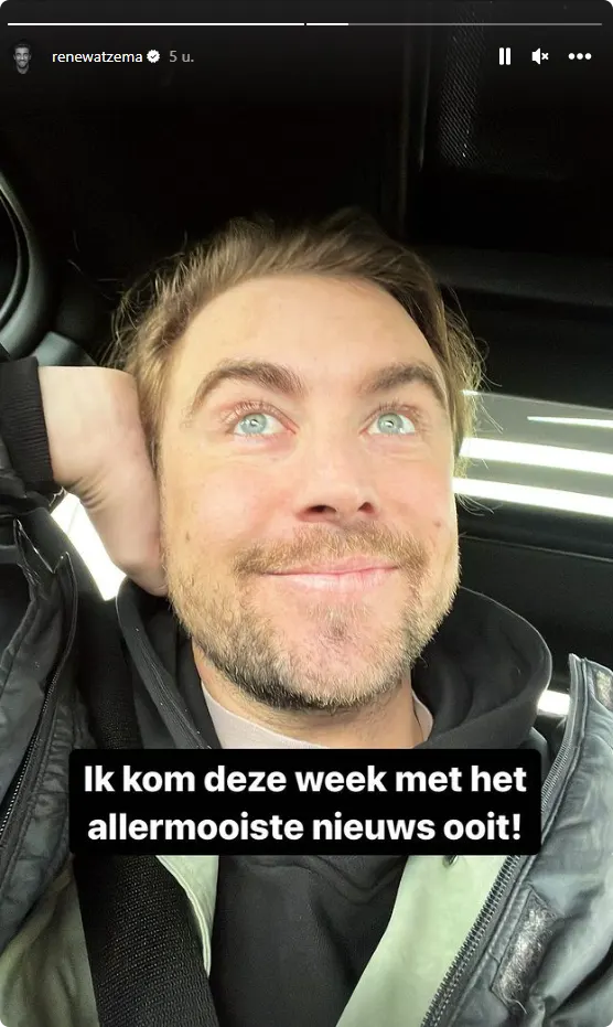 René liet donderdagochtend al in zijn Instagram Stories weten dat hij mooi nieuws te melden heeft:
