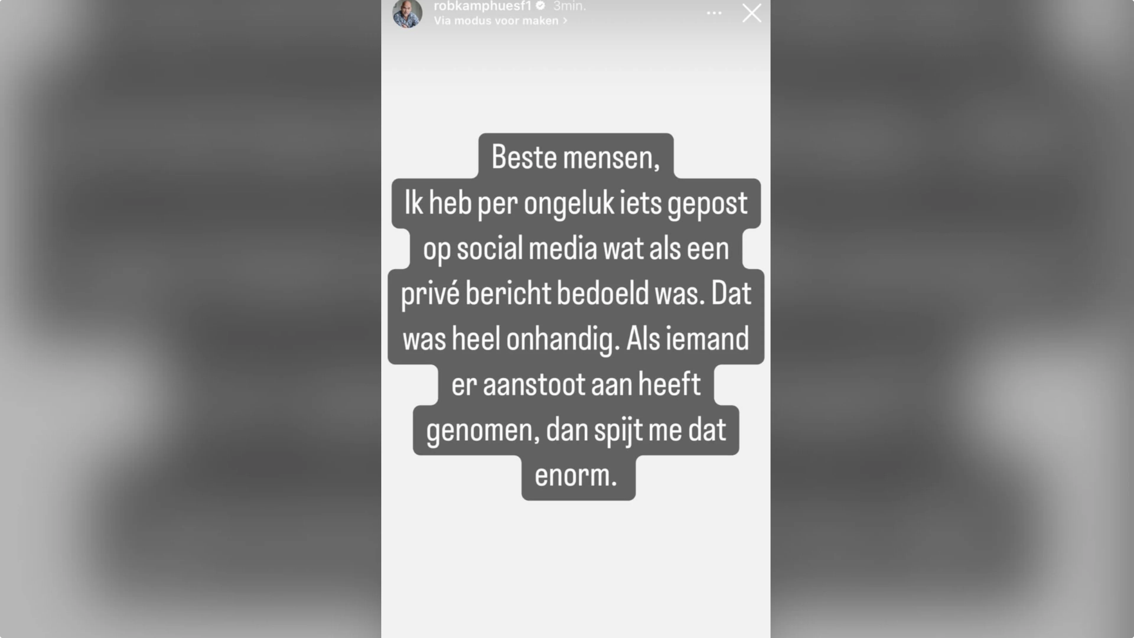 De presentator vindt het erg vervelend dat het is gebeurd. Op Instagram schrijf hij vrijdagavond: "Ik heb per ongeluk iets gepost op social media wat als een privé bericht bedoeld was. Dat was heel onhandig."