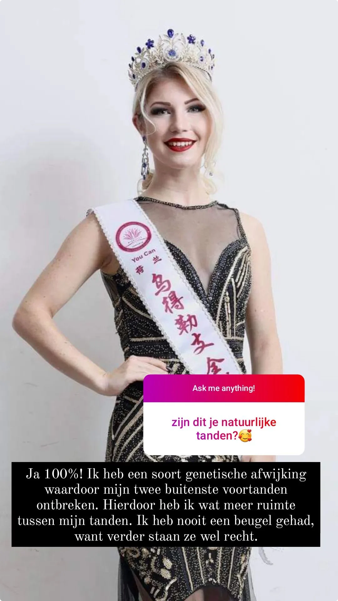 Romy Stuik (27) deelt in haar Instagram story een persoonlijk verhaal nadat een volger haar in een 'Ask me anything'-rondje vraagt of haar tanden puur natuur zijn.