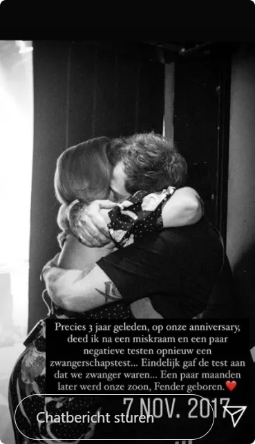 "Eindelijk gaf de test aan dat we zwanger waren", vervolgt ze. "Een paar maanden later werd onze zoon Fender geboren."