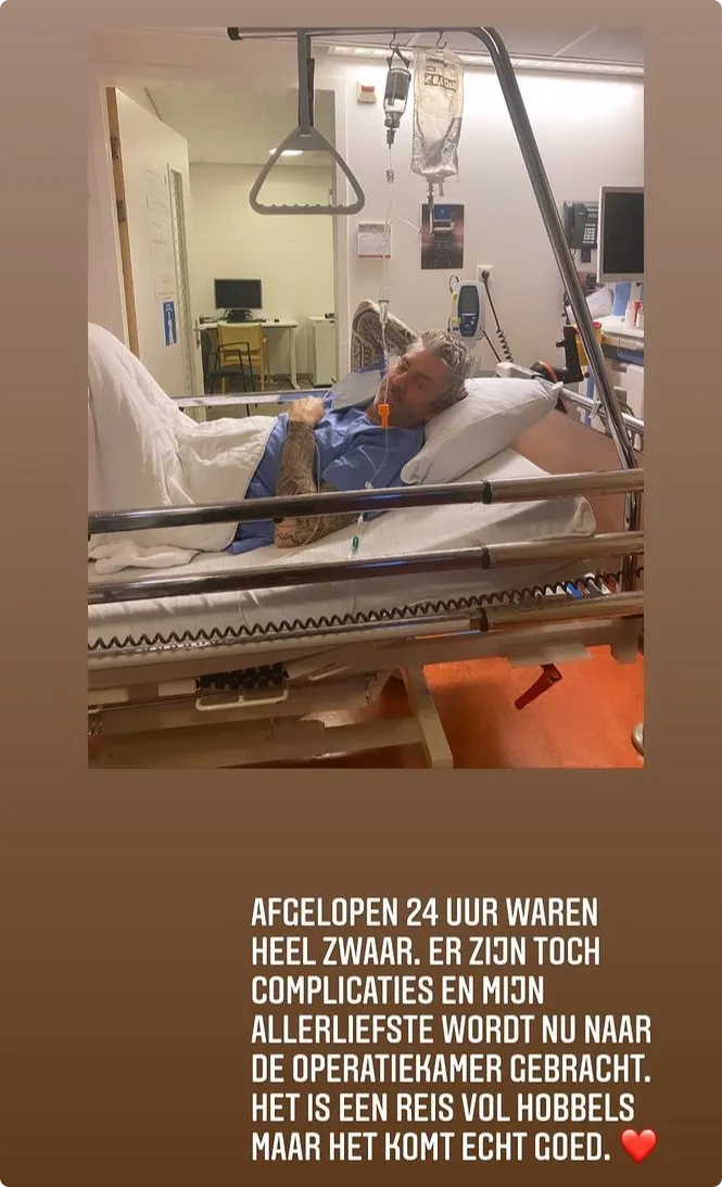 "Afgelopen 24 uur waren heel zwaar, er zijn toch complicaties en mijn allerliefste wordt nu naar de operatiekamer gebracht", schrijft Ruuds vriendin Olcay Gulsen in haar Instagram Stories. "Het is een reis vol hobbels, maar het komt echt goed."