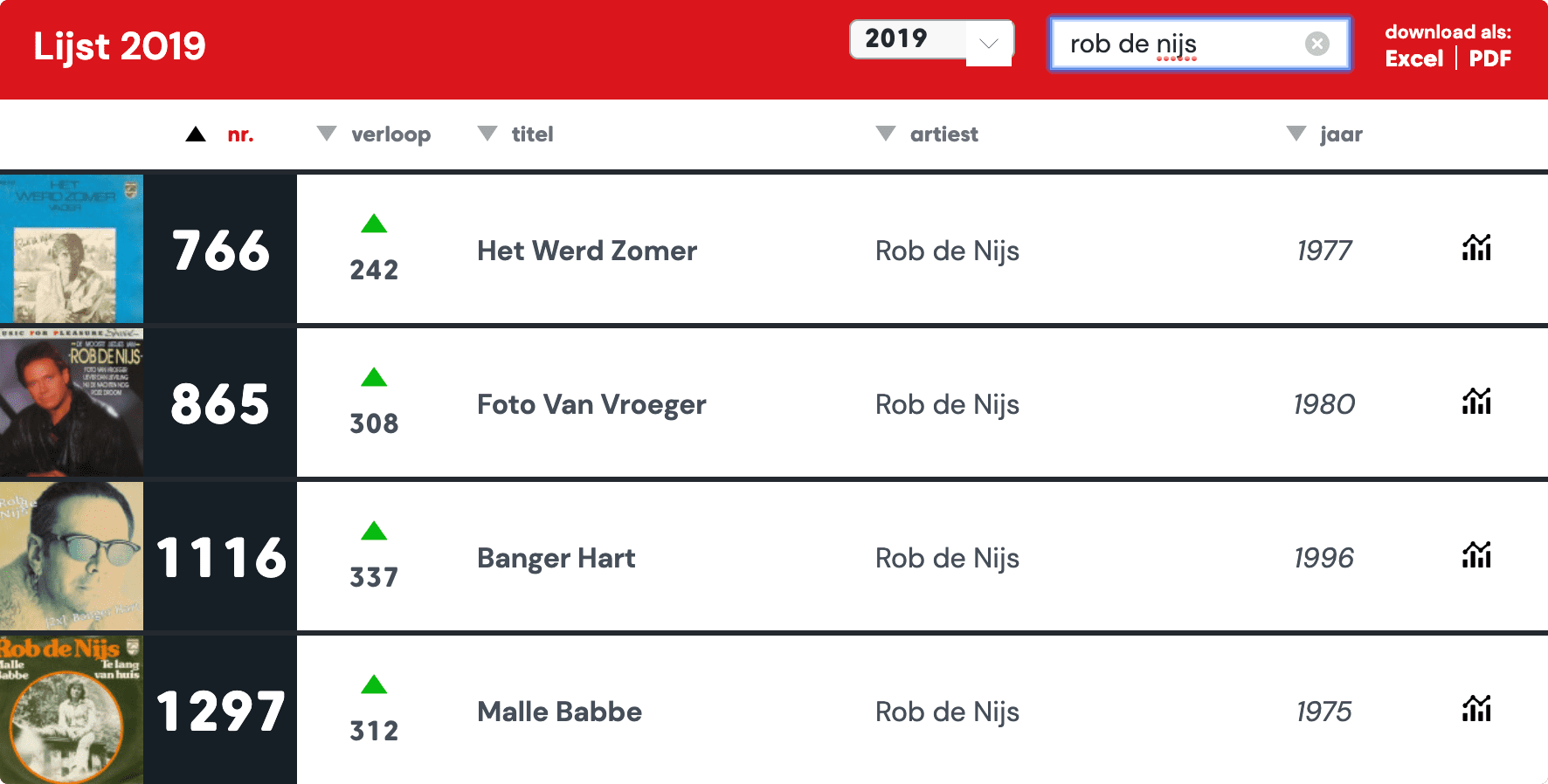 Vorig jaar stond de zanger met 4 liedjes in de Top 2000, waaronder ook met Foto van vroeger. Wat zou het toch fantastisch zijn als Rob dit jaar op de eerste plek staat. Breng dus allemaal je stem uit op Rob de Nijs en stemmen kan hier.
