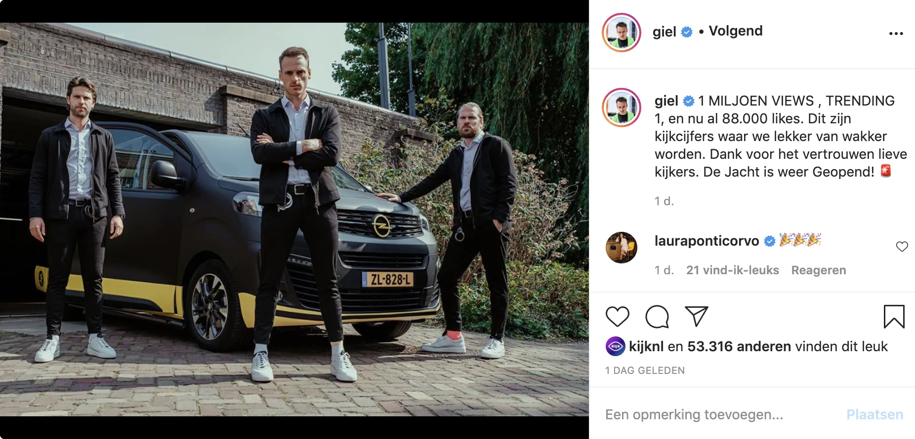 Op Instagram deelt Giel vol trots een post over het succes, zoals hieronder te zien is.