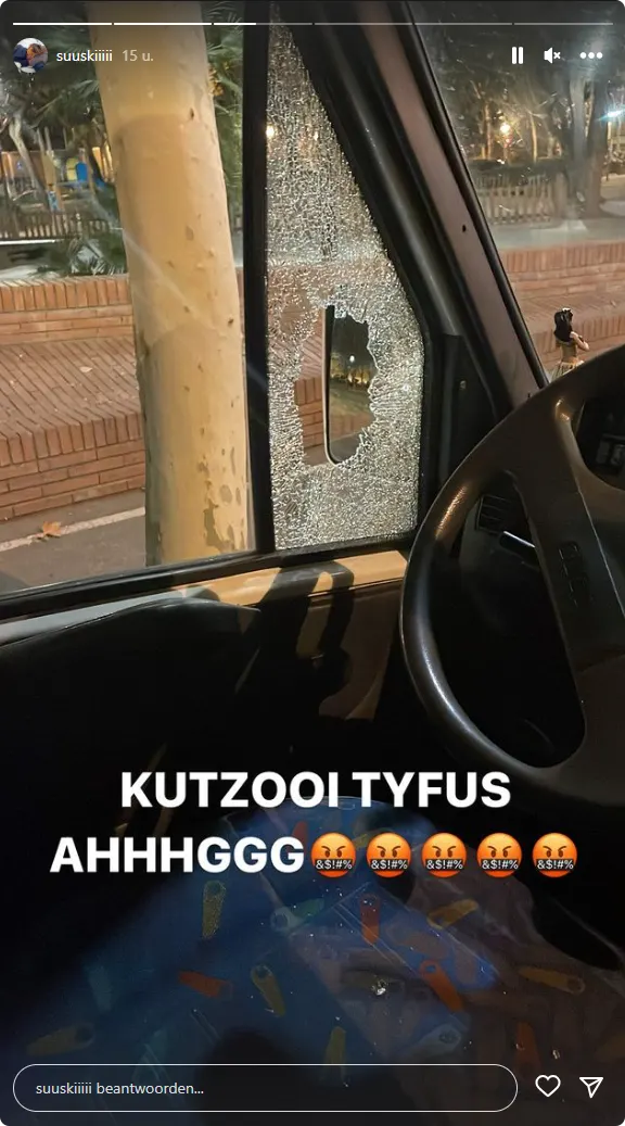 Op Instagram deelt Suus verschillende foto's en filmpjes (zie video) waarop te zien is dat haar ruit is ingeslagen. Wat er precies weg is, dat is niet bekend. Wel schrijft Suus op haar Instagram dat ze vannacht heeft geslapen met een hamer naast haar. Ook schrijft ze: "Er zit letterlijk bloed van de inbrekers op mijn dekens". Waarschijnlijk heeft de inbreker zich verwond aan het kapotte glas.