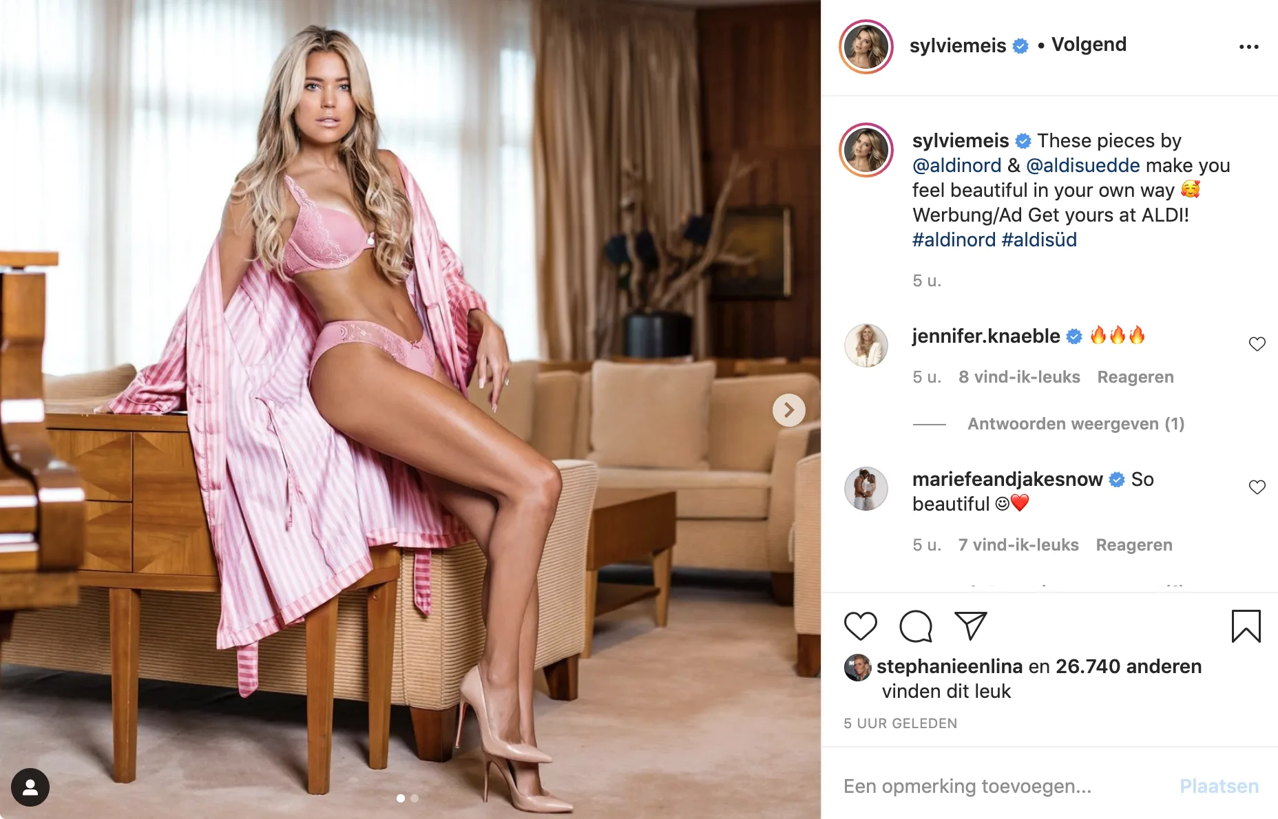 De sexy plaatjes zijn hieronder te zien. Veel volgers zijn onder de indruk van Sylvie en haar afgetrainde lichaam, zo is op te maken uit de reacties. "Mega hot Hübsche 🔥❤️😍", "Staat u goed hoor Heerlijk zelfs ❤️❤️❤", "Perfectie", "Ohlala, dat is een geweldig setje😍" en "Super great figure and very personable woman😍", wordt er onder andere geschreven.