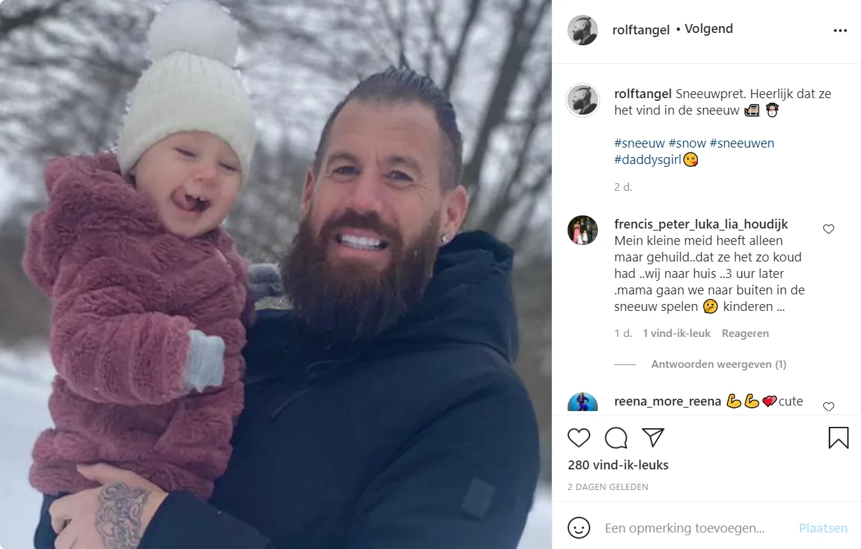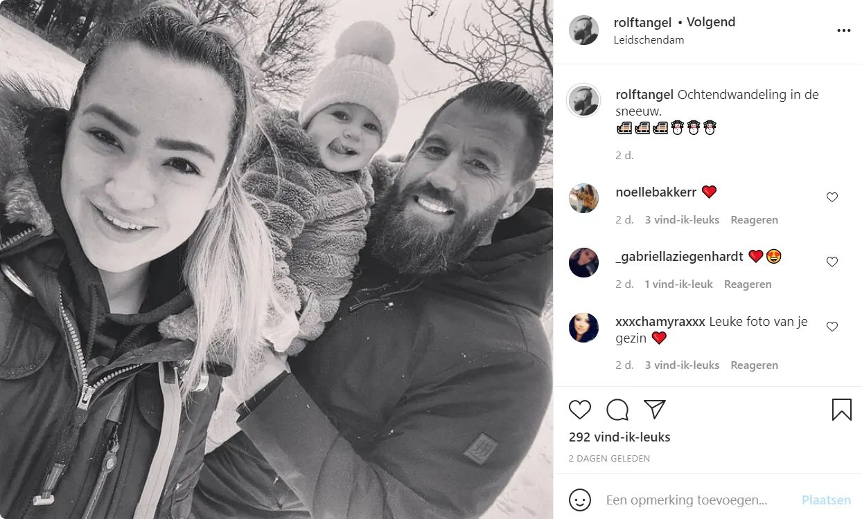 Na zijn relatie met Samantha de Jong is Rolf een gezinnetje gaan bouwen. Op de onderstaande foto post hij met zijn vriendin en dochter.