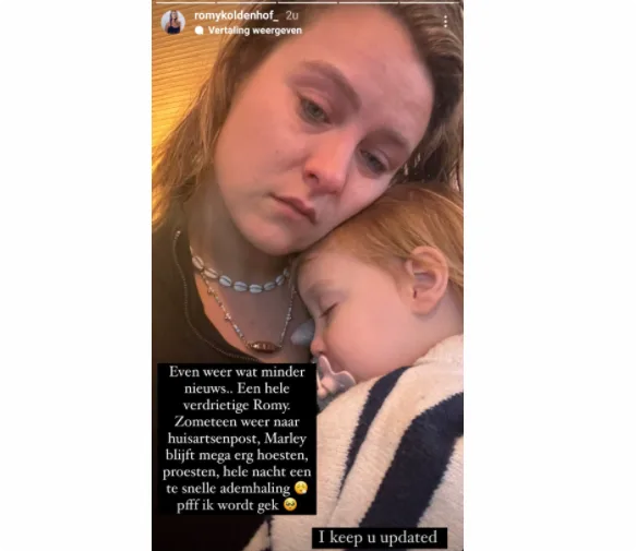"Zometeen weer naar huisartsenpost", vervolgt ze. "Marley blijft mega erg hoesten, proesten, hele nacht een te snelle ademhaling. Pff, ik word gek." Ze belooft haar volgers op de hoogte te houden.