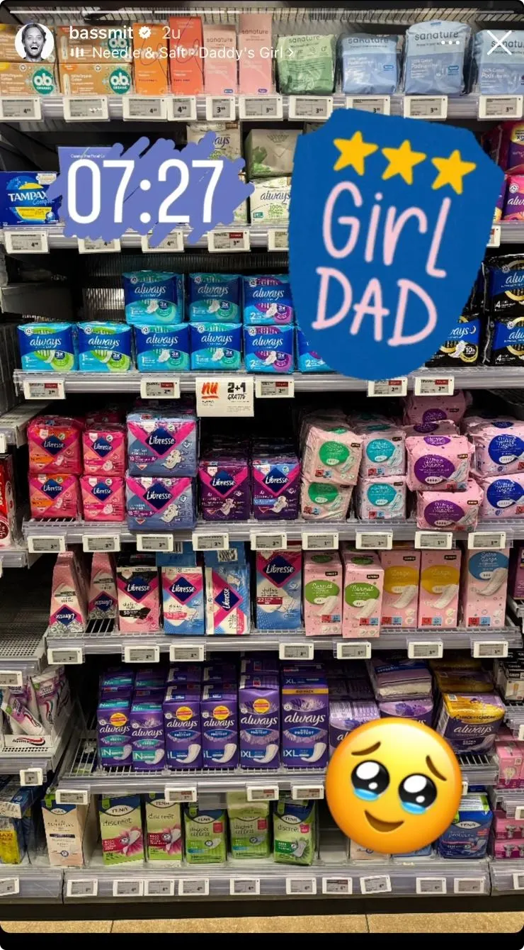 Bas Smit heeft op Instagram het nodige los gemaakt met een Story-post over zijn dochter. De influencer onthulde namelijk dat zijn dochter Lola (zie video) voor het eerst menstruatie had, en dat vaderlief naar de supermarkt moest voor hulpmiddelen.