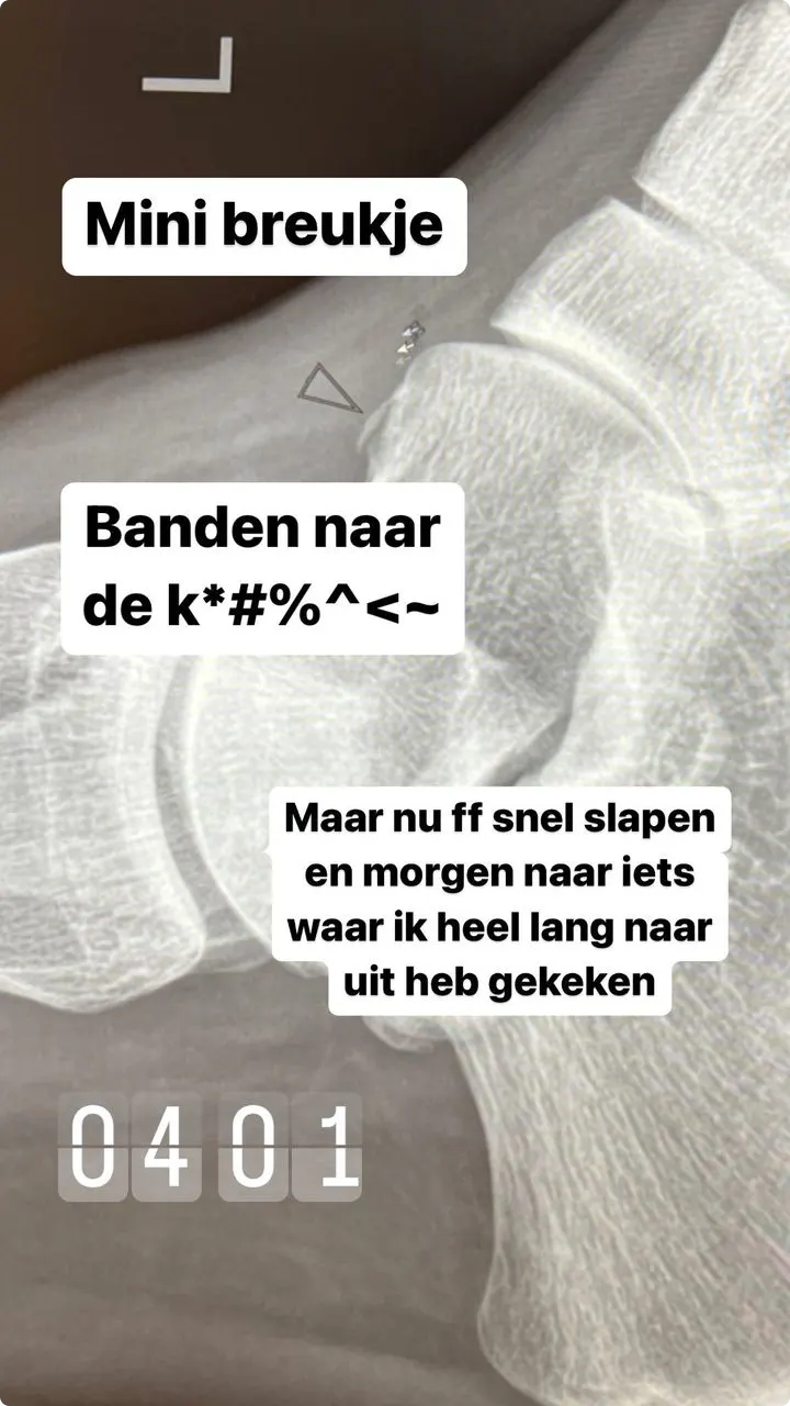 In de nacht van zondag op maandag moest Miljuschka naar het ziekenhuis in Amsterdam. "Banden naar de k*#%^<~", schrijft ze op instagram. "Maar nu even snel slapen en morgen naar iets waar ik heel lang naar uit heb gekeken."