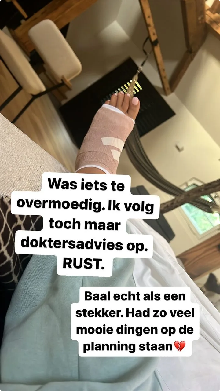 Miljuschka Witzenhausen (37) deelt vervelend nieuws. Haar enkelband is gescheurd...