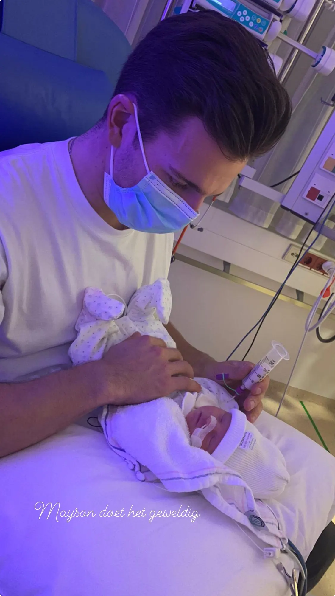Op Instagram deelt Dylan zaterdag ook al een prachtige foto van zijn gezin in het ziekenhuis. Zoontje Mayson werd zes weken te vroeg geboren, maar is ijzersterk. "Onze mooie zoon. Wat zijn we gek op jou en wat ben je perfect", schrijft de wielrenner op Instagram. "Ondanks een vroeg geboorte van 6 weken doet Mayson het super goed, een gezond en ster kereltje."
