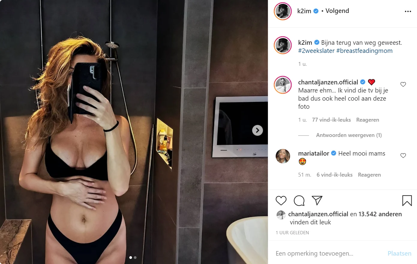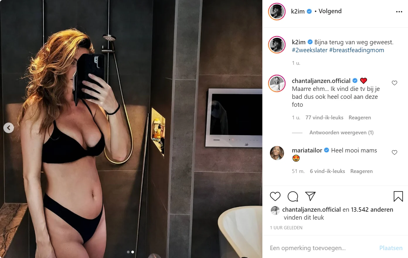 Kim Feenstra ziet er twee weken na haar bevalling alweer/nog steeds fantastisch uit. En dat wil ze graag laten zien aan de hele wereld...